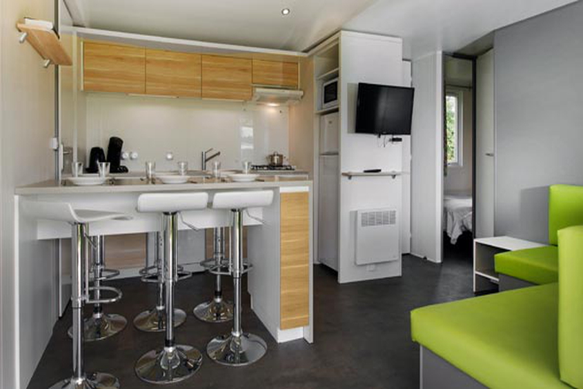 In den freistehenden Ferienhäuschen auf dem Gelände des „Molecaten Park Hoogduin“ im nordöstlichen Teil von Cadzand-Bad finden 5 bis 6 Personen Platz. Die 36 Quadratmeter großen Ferienwohnungen stehen in einem Kreis direkt hinter der „großen Düne“ („Hoogduin“) auf einer Wiese. Die Häuser sind mit elektrischer Heizung ausgestattet, haben 3 Schlafzimmer, ein Zimmer davon mit Doppelbett, die beiden anderen Schlafzimmer mit jeweils zwei Einzelbetten. Die offene Küche bietet einen Gasherd mit 4 Kochplatten, Kühlschrank, Mikrowelle, Geschirrspülmaschine, Wasserkocher und Senseo-Kaffepad-Automat. Das Wohn- und Esszimmer ist mit einem LCD-TV ausgestattet.