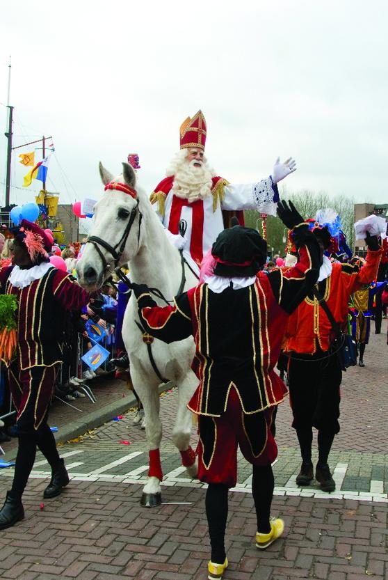Da der heilige Nikolaus auch der Schutzpatron der Seefahrt ist, kommt der Sage nach der holländische Sinterklaas aus Spanien mit dem Dampfschiff, meist dem „Pakjesboot 12“, in die Niederlande. Damit beide sicher Breskens erreichen werden sie häufig von einem Rettungsboot der „KNRM“ begleitet oder transportiert. Der Überlieferung nach reitet der holländische Nikolaus dann auf einem Schimmel über die Dächer und kommt mit seinem Helfer „Zwarte Piet“ durch den Schornstein in die Häuser, um den dort wohnenden Kindern Geschenke zu bringen. Er trägt wie der deutsche Nikolaus Bischofskleidung, eine Mitra, einen roten Talar und einen Bischofsstab – und natürlich einen langen wallenden weißen Bart.