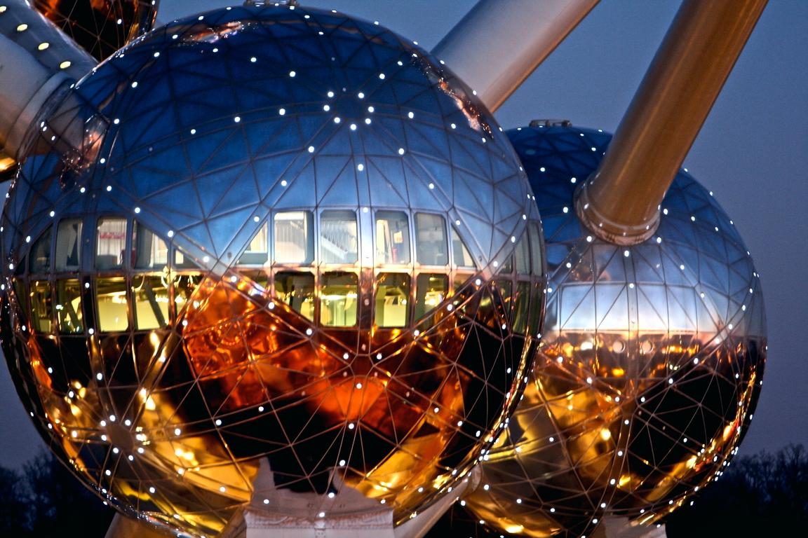 Neben dem „Manneken Pis“ ist das „Atomium“ das zweite weltbekannte Wahrzeichen Brüssels. Das Atomium ist 102 Meter hoch, es stellt die 165-milliardenfache Vergrößerung eines Eisenkristallmoleküls dar und wurde 1958 zur Weltausstellungzu als architektonisches Meisterwerk seiner Zeit errichtet. Auf acht Ebenen im Inneren von fünf Mega-Kugeln mit einem Durchmesser von 18 Metern, die durch die längsten Rolltreppen Europas miteinander verbunden sind, erfahren die Besucher des Atomiums Wissenswertes zu Atomtechnik, Raumfahrt, Astronomie und Meteorologie.
