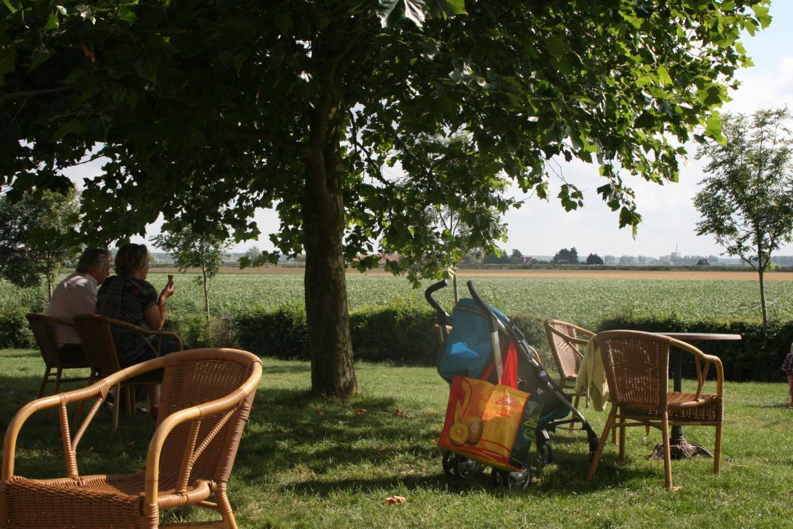 Dabei sitzt man gemütlich entweder in dem dem Hof angeschlossenen kleinen Cafe oder auf der Terrasse mit Wiese und Blick auf die davor liegende beruhigende Polderlandschaft. Oder auf „der Hand“ aus dem Hofeissalon heraus verkauft.