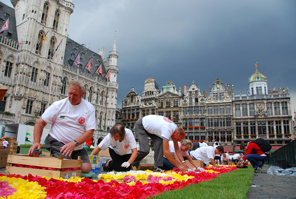 700.000 Begonien in allen Farben zieren alle zwei Jahre im August in Form eines Blütenteppichs den Grote Markt in Brüssel. Denn alle zwei Jahre erstrahlt das Herzstück der belgischen Hauptstadt in der vergänglichen Blumen-Pracht. Der Blumenteppich ist 75 Meter lang und 24 Meter breit – eine Fläche von 1.800 m2 mit Begonien, rund 300 Stück pro m2. Jeder Teppich hat ein anderes Motiv, so wurde beispielsweise 2008 das Motiv des Brüsseler Blumenteppichs von der französischen Teppichknüpfkunst des 17. Jahrhunderts inspiriert; 2016 hat der Teppich das Motiv „Japan“.