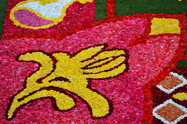 Den besten Blick auf das Meisterwerk haben Besucher vom Balkon des Rathauses aus, das zu dieser Gelegenheit zur Besichtigung geöffnet ist; hier kann man auch eine Ausstellung über die vergangenen Blumenteppiche besichtigen. Seit dem ersten Blumenteppich von 1971 hat sich die Begonie durch ihre robuste Natur als idealer Rohstoff etabliert. Nach dem Schneiden halten die Blumen noch einige Tage ohne Wasser und Erdreich auf dem Pflaster des Platzes und müssen nur bei besonderer Hitze von rund 100 Helfern etwas besprengt werden, um nicht zu vertrocknen.