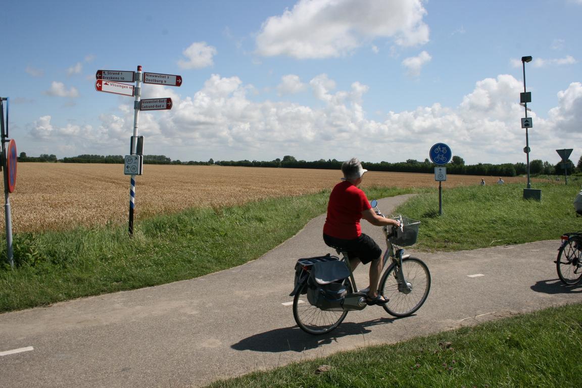 Zusätzlich weisen an allen Straßen und Wegen rund um Nieuwvliet-Bad weiße Schilder mit grünem Richtungspfeil und der Nummer des nächsten Knotenpunktes und möglichen Zwischenzieles hin. Und das in beide Richtungen, so dass die Tour im und gegen den Uhrzeigersinn gefahren werden kann. Praktisch an diesem Knotenpunktsystem ist auch, dass eine Radtour an jedem Knotenpunkt begonnen werden kann. Wenn man also eine Radtour plant, sollte man die Knotenpunkte, die man anfahren will, vorher recherchieren und sich notieren. Und wenn Sie unterwegs pausieren wollen um den Akku des Elektro-Bike oder den eigenen aufzuladen warten rund 25 „Fietscafes“ auf Fahrradfahrer.
