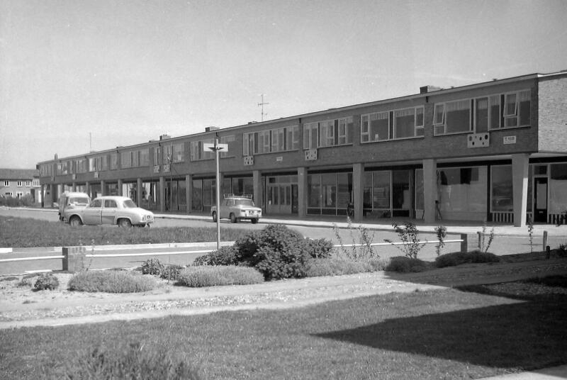 Ladenzeile „De Duinplein“ im Zentrum von Cadzand-Bad um 1963