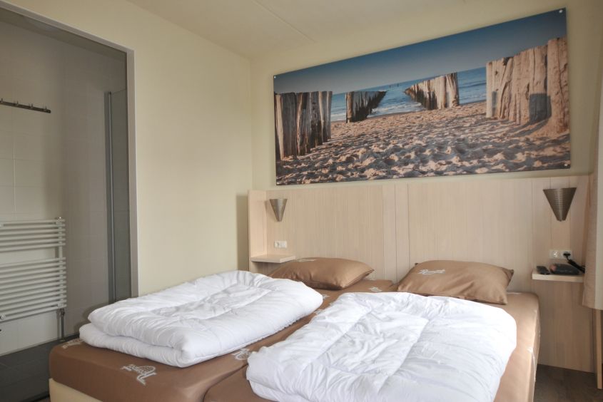 Im Obergeschoss des Ferienhauses in der „Noordzee Residence Cadzand-Bad“ befinden sich zwei Schlafzimmer, ein Badezimmer mit Dusche und eine separate Toilette. Zur Komfortausstattung gehören eine Hifi-Anlage mit DVD-Player, ein kostenloser Internetanschluss sowie ein Fahrradschuppen, in dem Gäste ihre mitgebrachten Fahrräder unterstellen können. Diese Unterkunft kann mit dem Kinder-Plus-Paket gebucht werden.