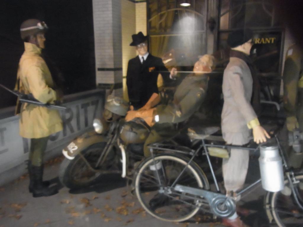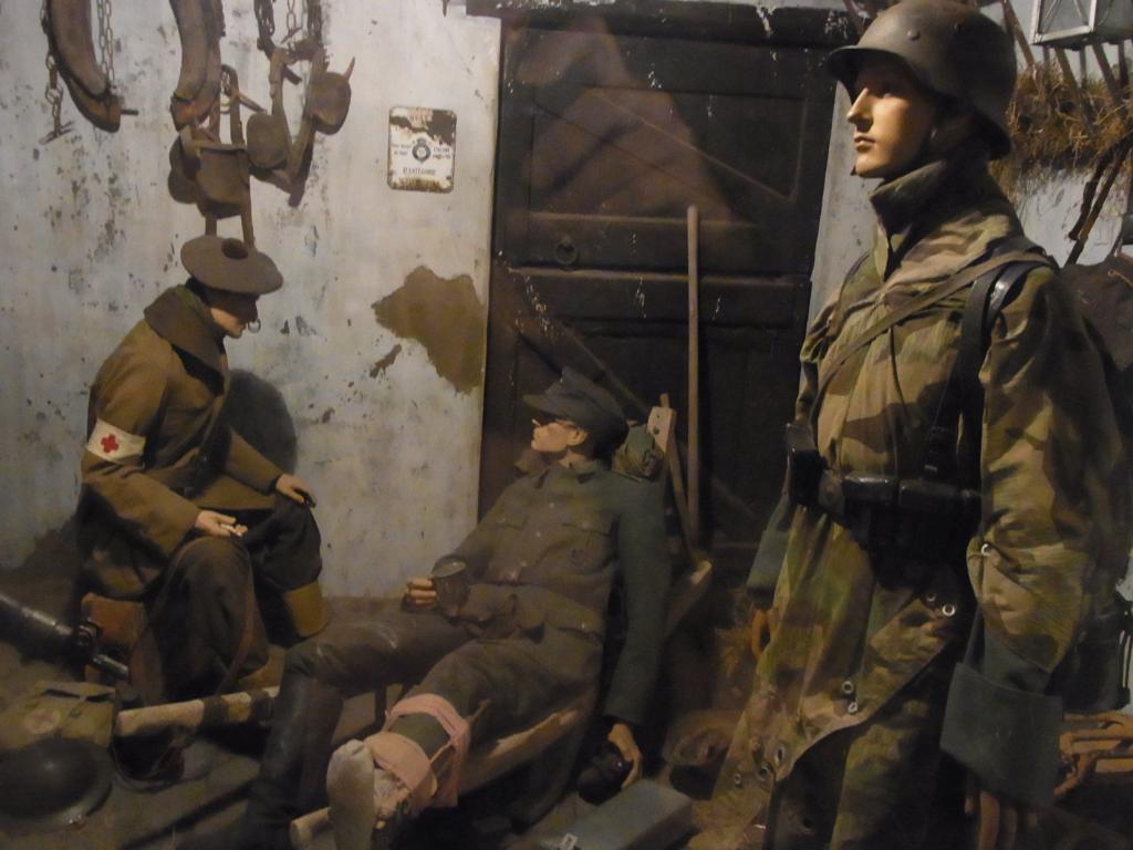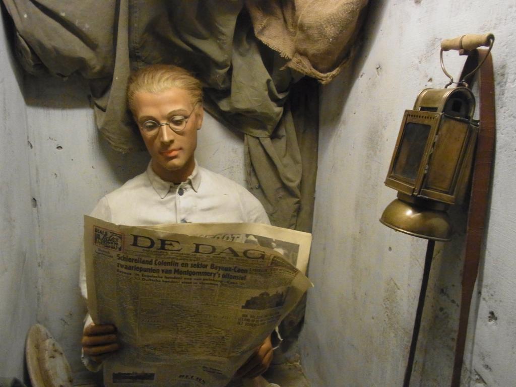 Gewehrfeuer und Granateinschläge untermalen akustisch die Situationen und Exponate: Puppen in deutschen, kanadischen und polnischen Uniformen aller Waffengattungen, Pistolen, Gewehre und Handgranaten, aber auch Briefe an die Heimat, Zigaretten oder Süssigkeiten. Besonders beeindruckend eine nachgestellte Szene bei Retranchement: Die nächtliche Überquerung des Abwasserkanals und das Erklimmen durch kanadische Truppen unter dem Abwehrfeuer der deutschen Wehrmacht.