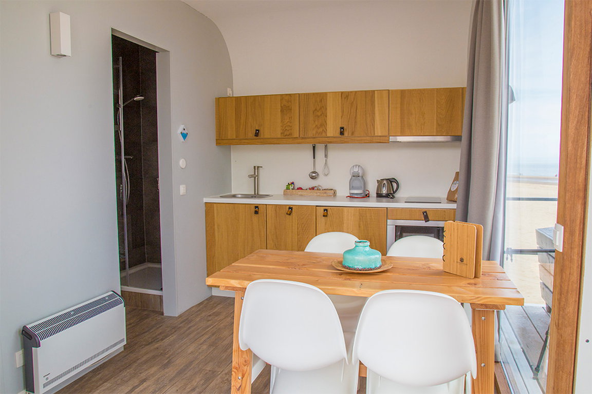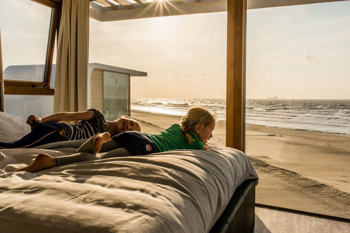 Morgens direkt aus dem Bett mit den Füßen in den Sand springen, abends mit Blick auf die Wellen der Flut vor der Ferienhaustür einschlafen: Die Strandhäuser „Strandweelde“ direkt auf dem Strand von Nieuwvliet-Bad bieten „Sommer-Sand-Strand-Urlaubsfeeling“ pur. Die zweigeschossigen Ferienhäuschen am Strand haben eine Größe von rund 25 Quadratmetern und bieten zwischen Brandung und Dünen Wohnraum für bis zu 6 Personen plus Hund. Im Erdgeschoss befinden sich der kombinierte Wohn-, Ess-, Schlafraum mit Fernseher und großem Panorama-Fenster zum Meer, eine offene, komplett und komfortabel ausgestattete Küche, ein Badezimmer mit Dusche und separater Toilette sowie ein Doppelbett. Aus der ersten Etage genießen Urlauber den einzigartigem Panorama-Meerblick aus Etagenbett und Doppelbett, das Wohnzimmer hat einen Fernseher und ein Luxus-Schlafsofa. Mieter der „Strandweelde“-Strandhäuser am Strand von Nieuwvliet-Bad können zudem die weiteren zentralen Einrichtungen des nahen Campingplatzes „Zonnenweelde“ mit Rezeption, italienischem Restaurant „Piazza“, Fahrradverleih, Supermarkt, saisonaler Kinderanimation und Fußballfeld direkt auf der Rückseite der Düne.